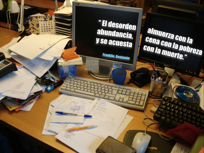 En el caso de que tu respuesta sea «Sí» a alguna de las preguntas anteriores, creo que te puede ser muy útil una regla que te ayudará a mantener controlado principalmente el correo y el papeleo. Evitando un puesto de trabajo tan agobiante como el mostrado en la foto.