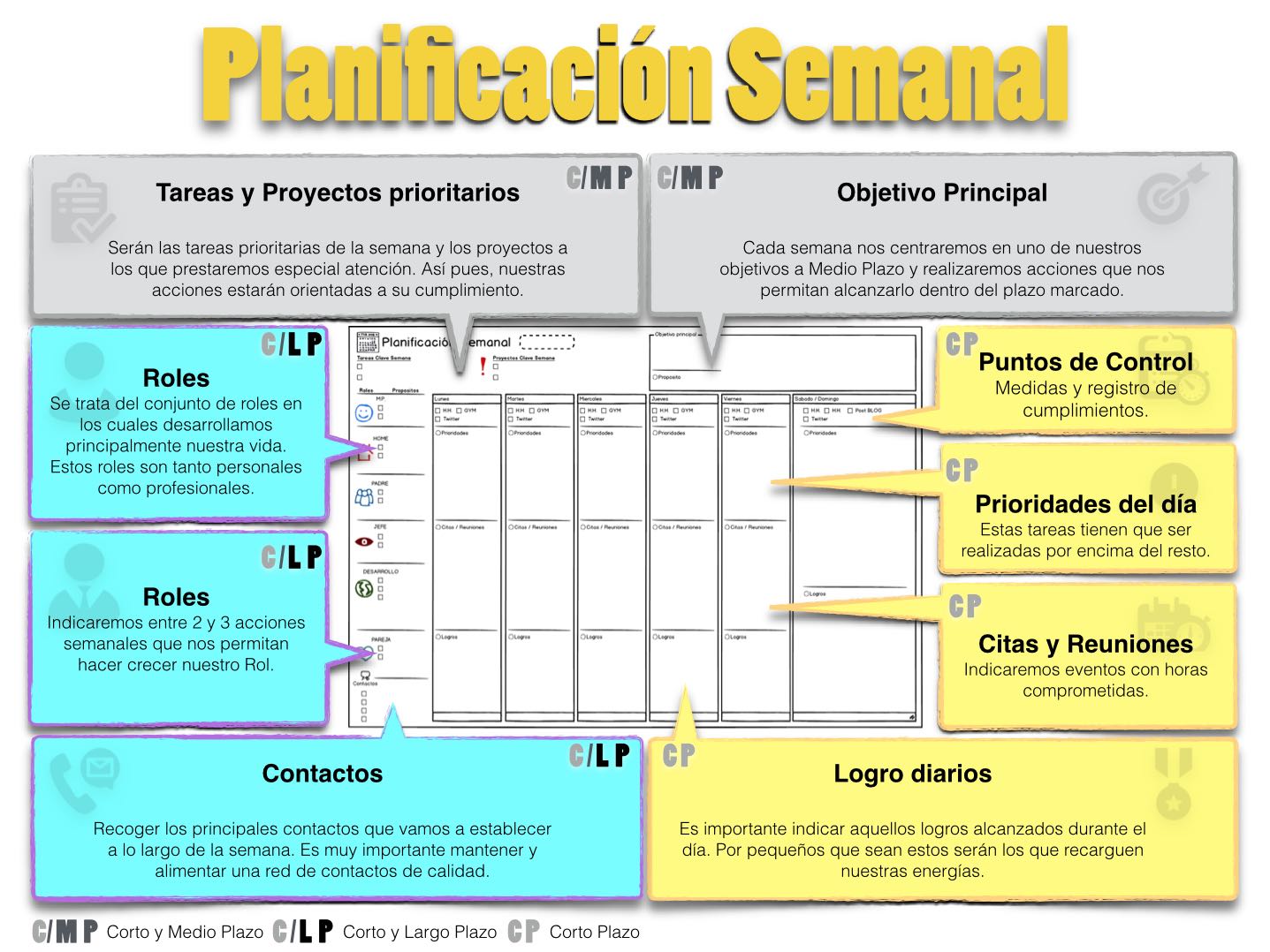 Te dejo aquí la posibilidad de descargar en pdf la plantilla y la explicación resumida. Planificación Semanal. Plantilla personal.