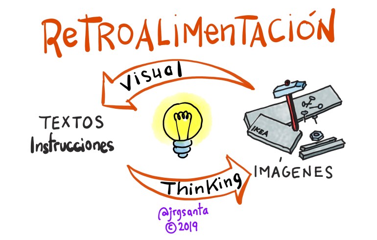 El Pensamiento Visual (Visual Thinking) no se basa en la utilización del dibujo como única herramienta de comunicación. La potencia del Visual Thinking radica en saber combinar imágenes y palabras para que entre ambas se produzca una reacción de retroalimentación que nos permita elevar la calidad de los pensamientos e ideas.