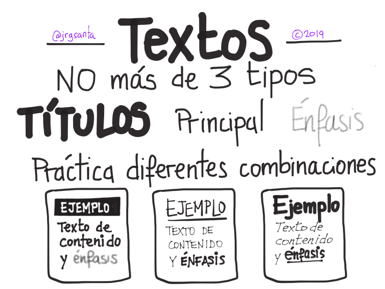 Sin embargo, es posible comenzar a aplicar técnicas de Visual Thinking utilizando únicamente texto. Esta es una forma de perder el miedo y lanzarnos al emocionante viaje del Pensamiento Visual.