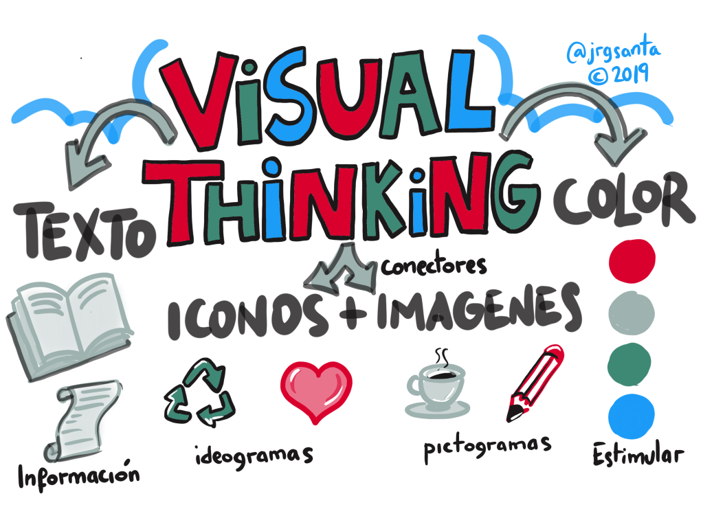 Empezar usando texto e iconografía sencilla, para ir mejorando a base de práctica. Así que anímate y comienza por aquí: Visual Thinking. Elementos Básicos.