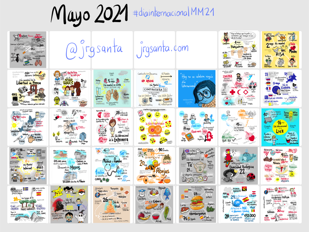 Hoy os muestro el resultado del Reto #diaInternacionalMM21 correspondiente al mes de mayo. Durante este mes he conseguido mantener el reto sin problemas. Además, a pesar de no celebrarse días especiales durante los días 7, 11 y 14 de mayo, el 11 y 14 publique mapas mentales relacionados con diferentes efemérides.