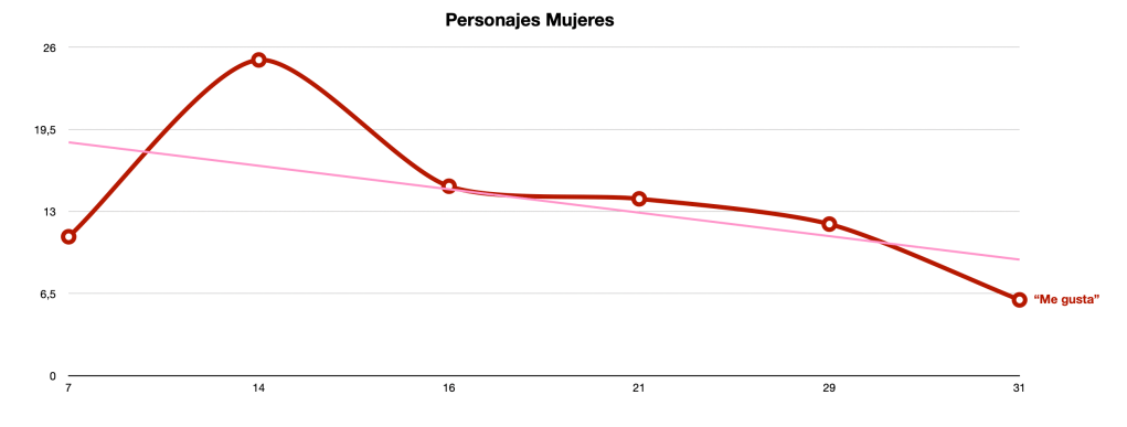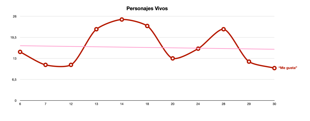 Y aparentemente separando los factores del sexo y edad del personaje tampoco parecen estar influyendo, ya que en todos los casos la tendencia es negativa. En la única que prácticamente se mantiene es en la de personajes vivos. Así que debo de cambiar en algún sentido, pero aún no tengo claro cuál puede ser y por tanto necesitaré seguir analizando la información en febrero para ver mejor la tendencia.