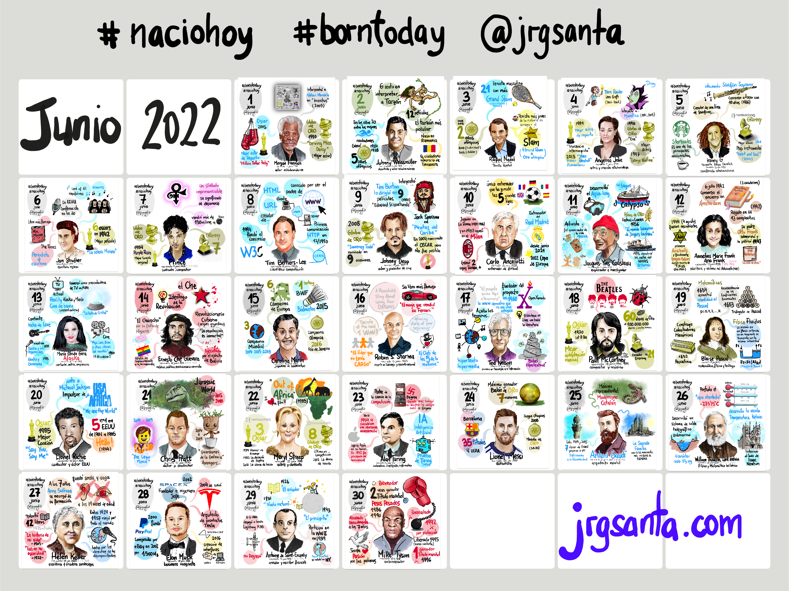 Hoy os presento el resultado de mi reto #naciohoy #borntoday del mes de Junio 2022. Es decir, he alcanzado el 50% del objetivo 🥳🥳
