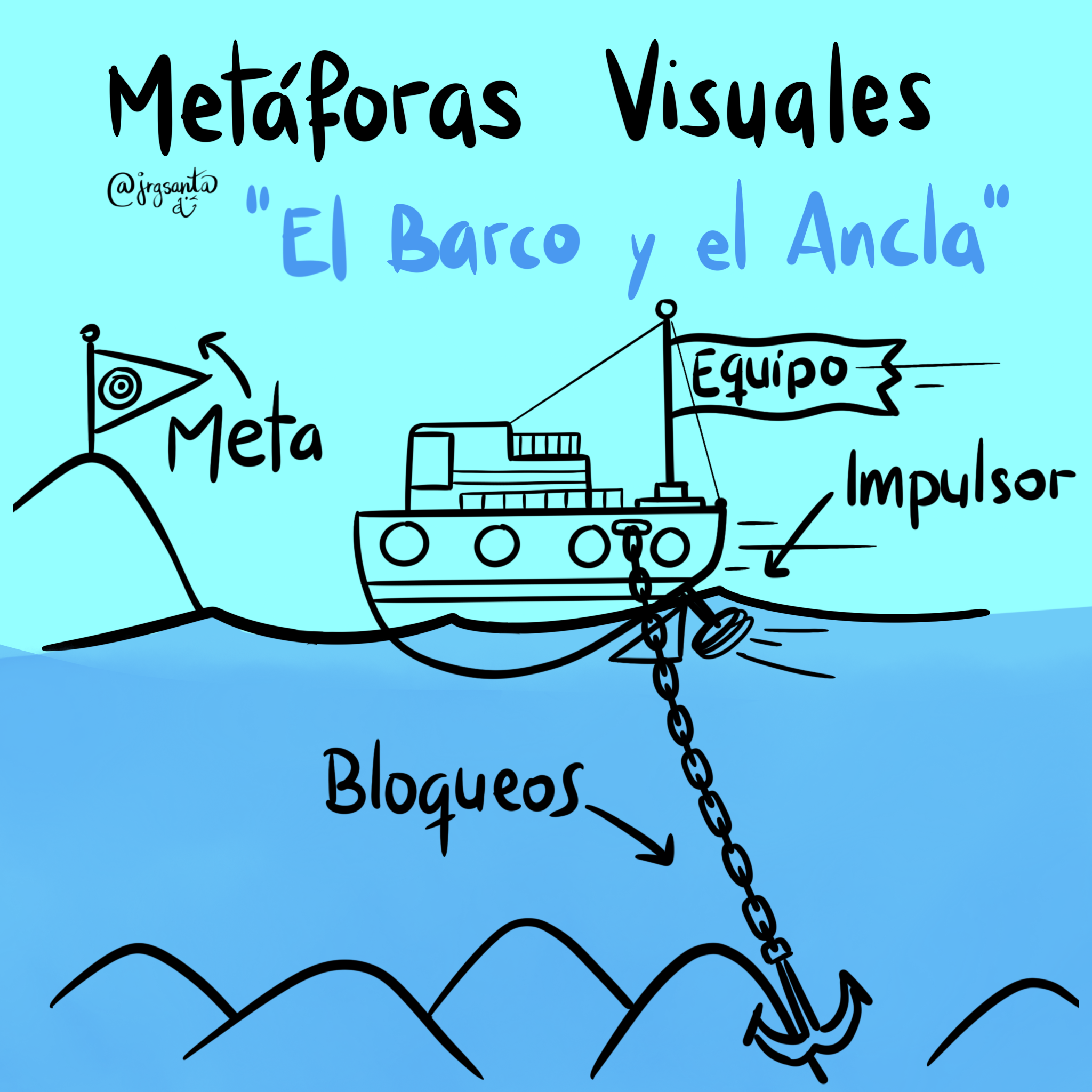 Aquí está la magia del Liderazgo Visual: cuando ves este dibujo, te das cuenta instantáneamente de que por mucho que forcemos el motor (por muy duro que trabaje tu equipo), si el ancla está echada, el barco no se va a mover, solo se va a tensar hasta romperse.