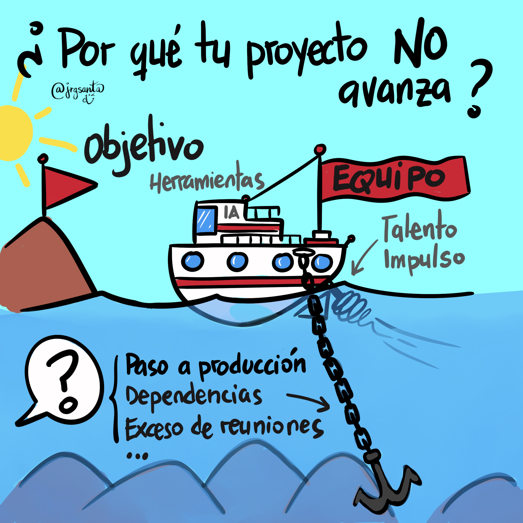 Esta poderosa metáfora ilustra un principio fundamental: la necesidad de priorizar la eliminación y resolución de los impedimentos que nos frenan (el ancla) antes que intentar compensar la falta de velocidad invirtiendo más recursos (más motor o vela al barco). En la gestión de proyectos, a menudo es más eficiente retirar los obstáculos (procesos obsoletos, dependencias no resueltas, cuellos de botella) que seguir añadiendo personal o presupuesto, solo para que esos nuevos recursos impacten y se paralicen ante los mismos problemas de fondo. La velocidad real se gana liberando el ancla.