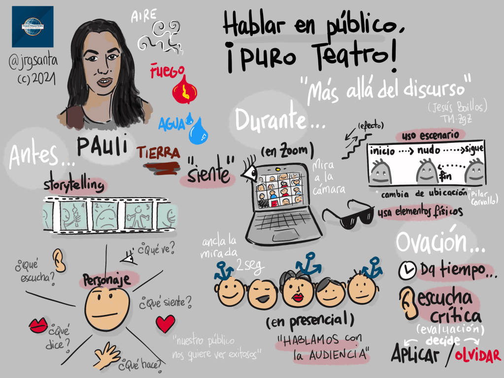 Una ponencia fantástica con una enérgica Pauli que nos enseñó de forma magistral cómo utilizar técnicas teatrales para preparar y exponer nuestros discursos, y para recibir de forma positiva tanto nuestra merecida ovación como las críticas que recibamos de nuestra ejecución.