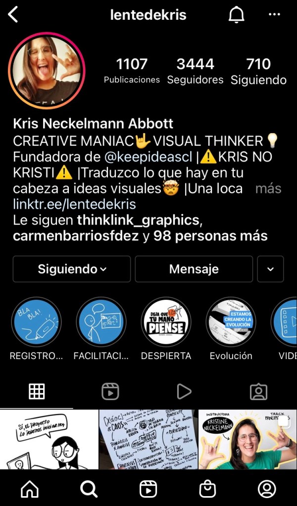 Una ponencia súper dinámica sobre las bases del Visual Thinking y la utilización de Mapas Mentales a cargo de Dina Spampinato, seguidamente os dejo una imagen de su Instagram para que podáis seguirla.