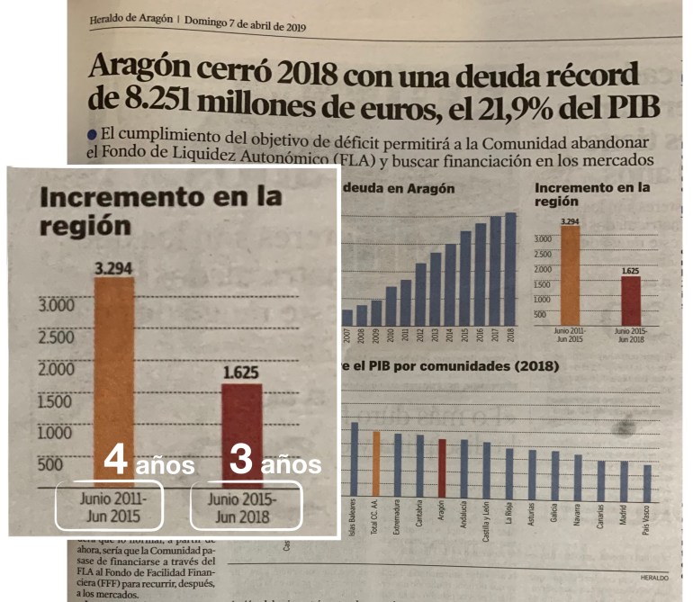 En este caso me gustaría remarcar únicamente el gráfico “Incremento en la Región”, que sería fantástico, pero si nos fijamos en el eje horizontal realmente está comparando el incremento producido en 4 años frente al producido en 3 años, y que lógicamente son magnitudes que no pueden ser comparables para dar un explicación basada en estos datos.