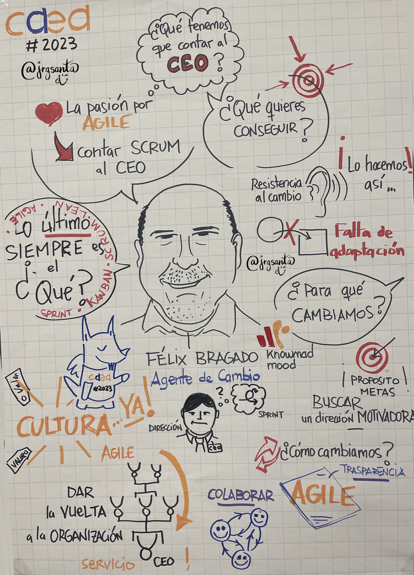 Sketchnote remasterizado de la ponencia de Félix Bragado- Caea 2023