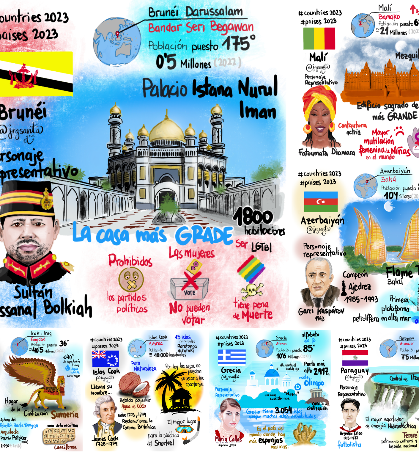 Séptimo post de mi reto #paises2023 con el que sabéis que pretendo realizar un Sketchnote de cada uno de los 195 países que integran nuestro maravilloso planeta 🌍 la Tierra.