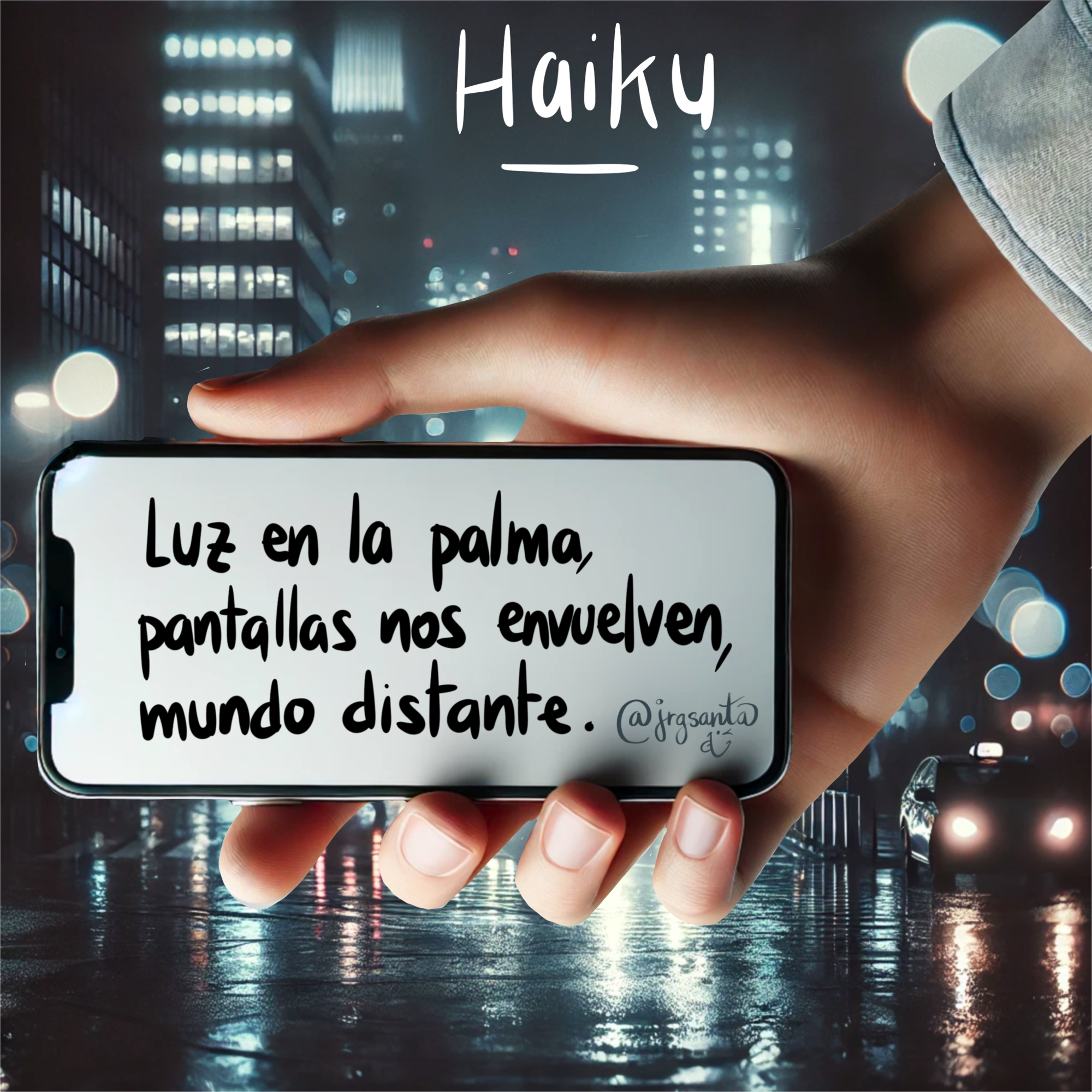 Este haiku busca capturar la idea de cómo los smartphones están siempre en nuestras manos, creando una conexión constante con el mundo digital, pero también una cierta distancia con el mundo físico que nos rodea.