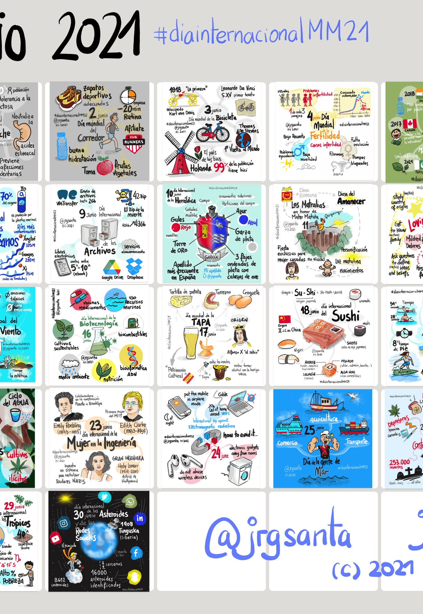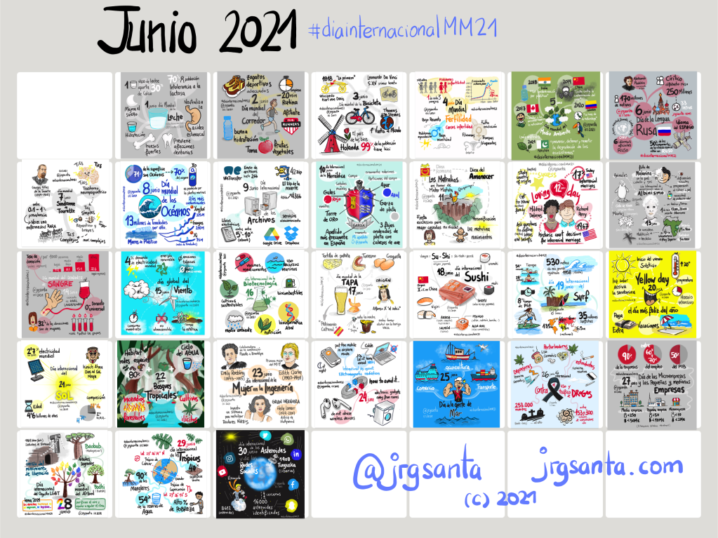 Hoy os muestro el resultado del Reto #diaInternacionalMM21 correspondiente al mes de junio. Durante este mes he conseguido mantener el reto sin problemas. En este mes todos los días tenían uno o varios días por celebrar.