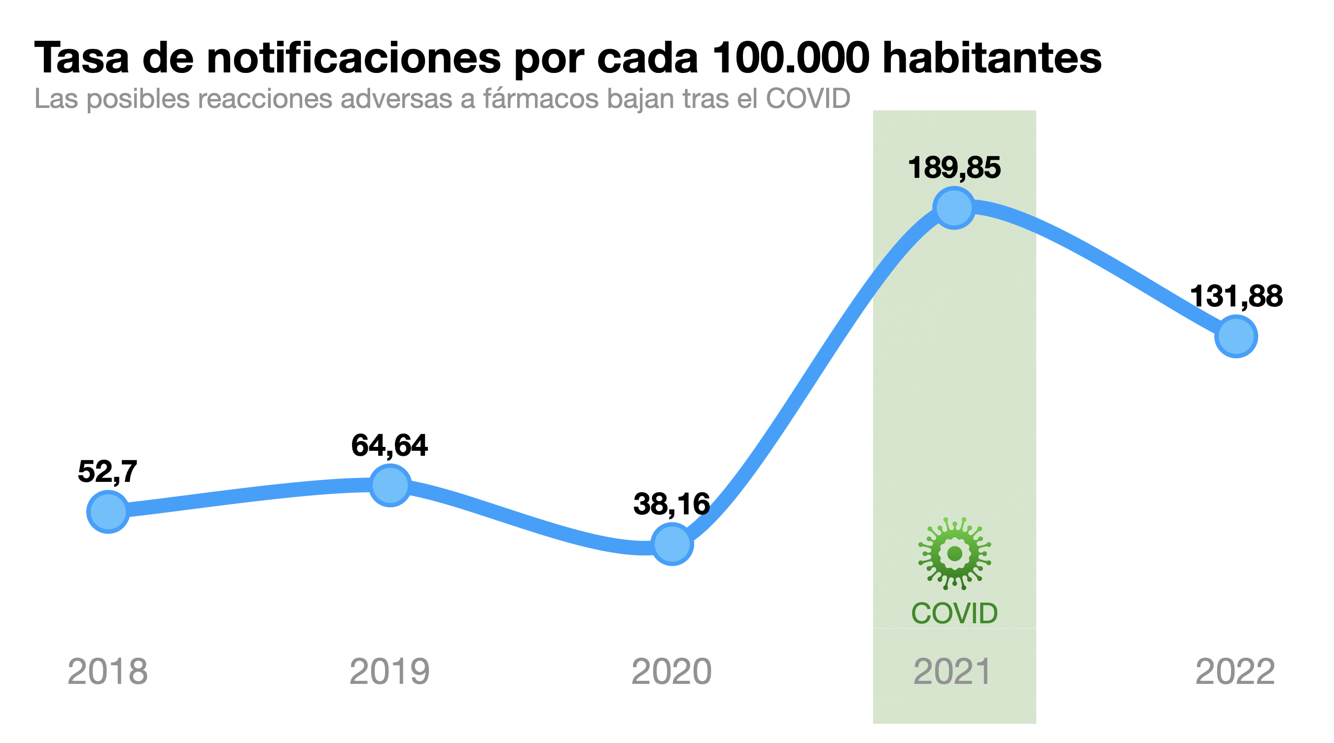 Hoy (4 de agosto de 2023 en el Heraldo de Aragón) me he encontrado con una noticia que me ha llamado la atención. El artículo trataba sobre las Tasas de notificaciones de reacciones adversas a fármacos en Aragón durante los últimos años. En la noticia, se incluía un gráfico de barras que mostraba las tasas de notificaciones año tras año. A simple vista, el gráfico parecía transmitir información clara y concisa. Sin embargo, al analizarlo más detenidamente, encontré, en mi opinión, varios errores que ponen en cuarentena su contenido.