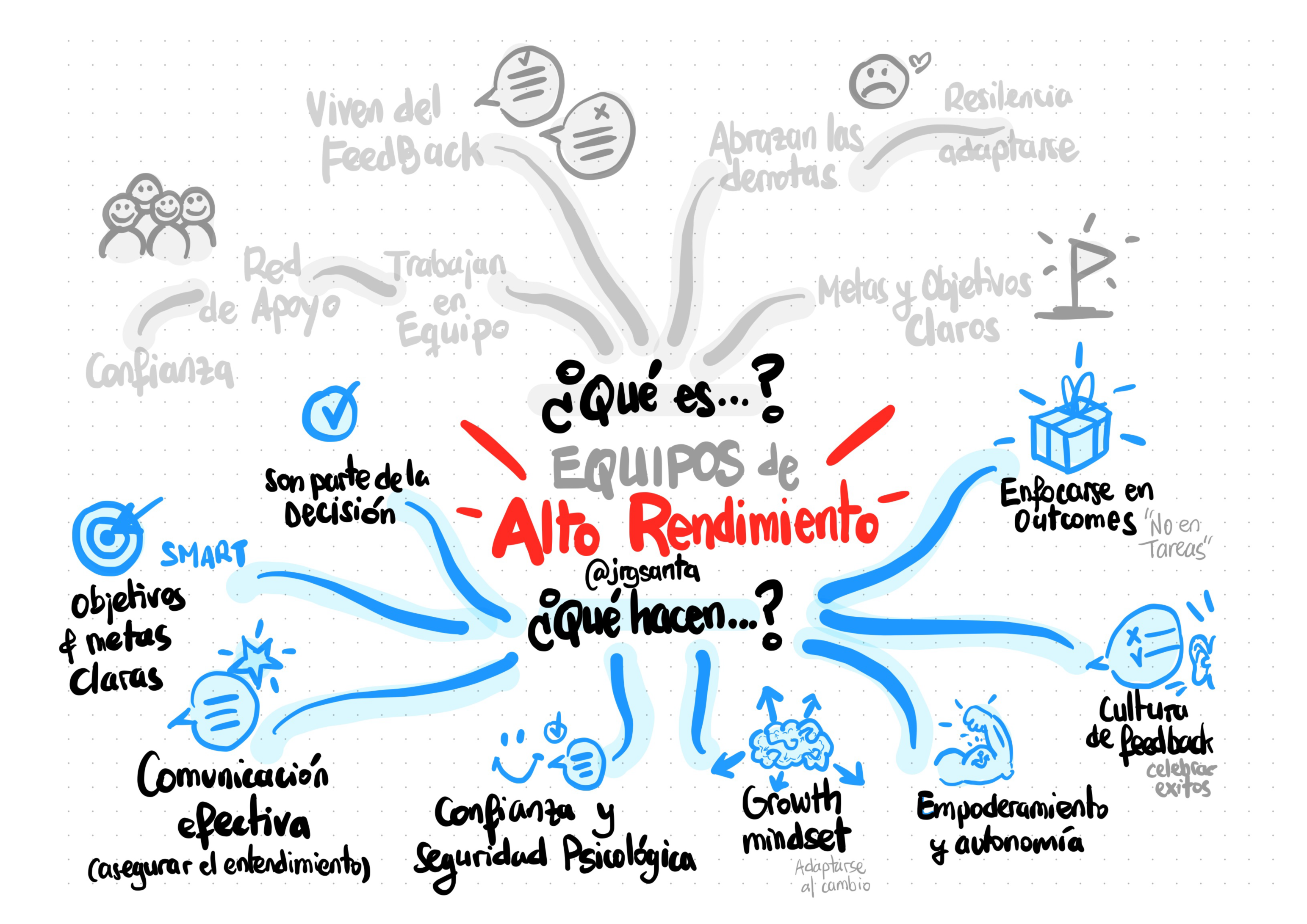 Para terminar un ejemplo de Mapa Mental mucho más clásico sobre los equipos de alto rendimiento.