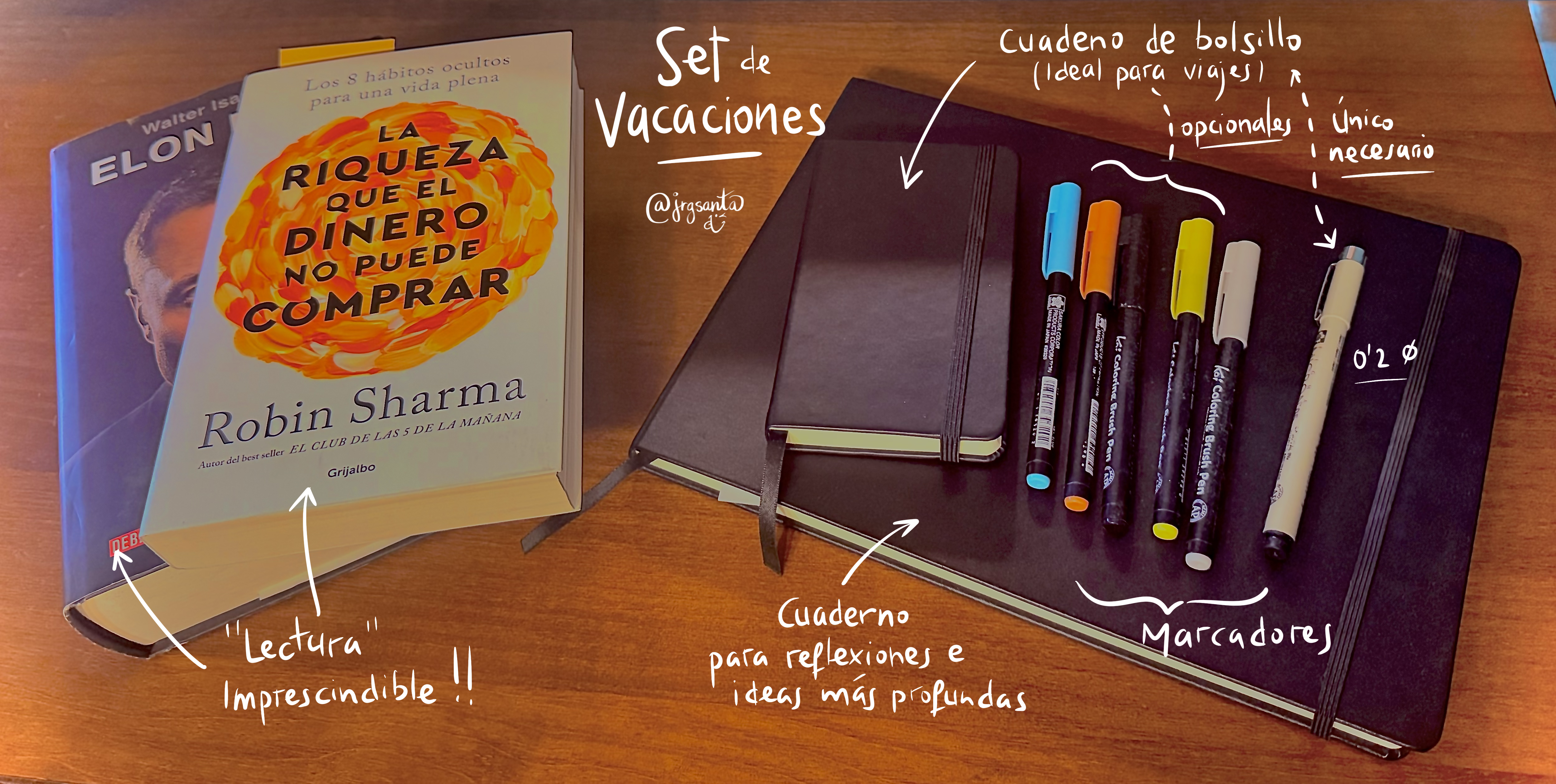 El «Cuaderno de Vacaciones»: Lleva un pequeño cuaderno y unos bolígrafos. En lugar de mirar el móvil, úsalo para: